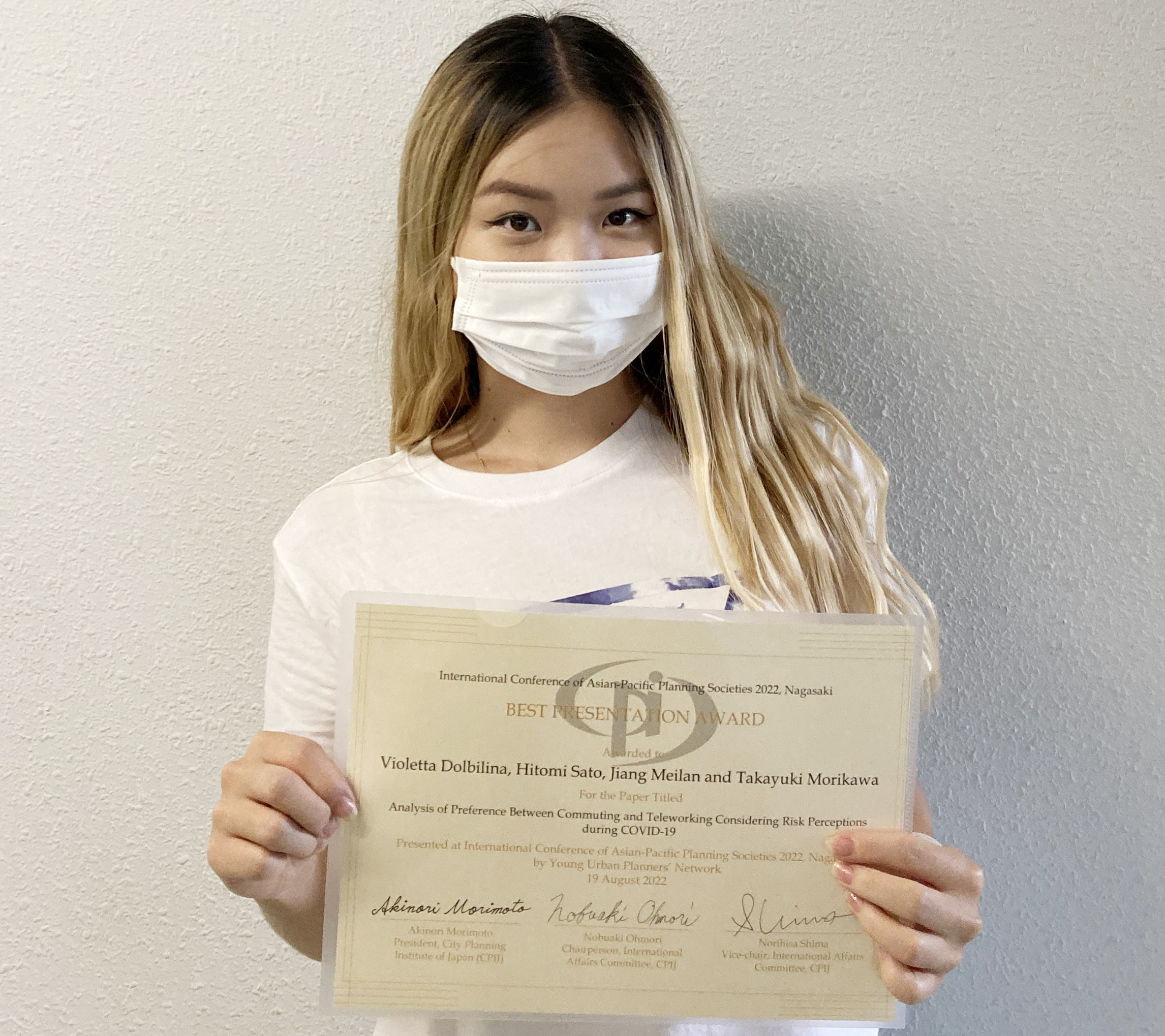 Award winner: Yue Wang (Yamamoto Lab., D2), Meilan Jiang (NUTREND), Toshiyuki Yamamoto(NUTREND), Jia Yang(TTRI*)、Motohiro Yamazaki(TTRI*)