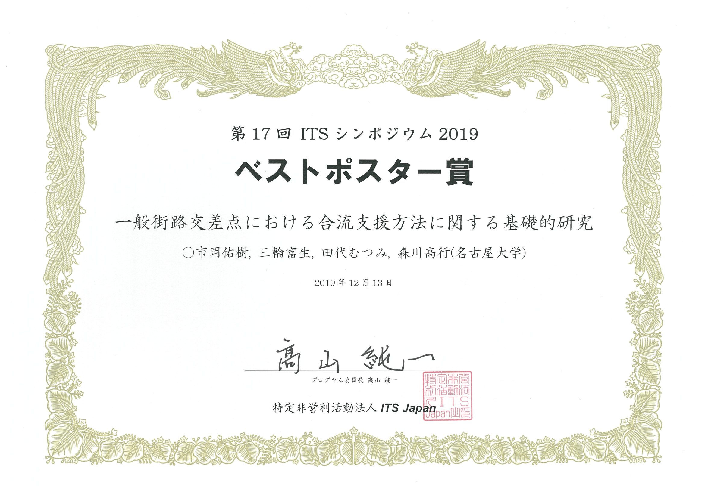 第17回ITSシンポジウム2019ベストポスター賞[2019/12/19]